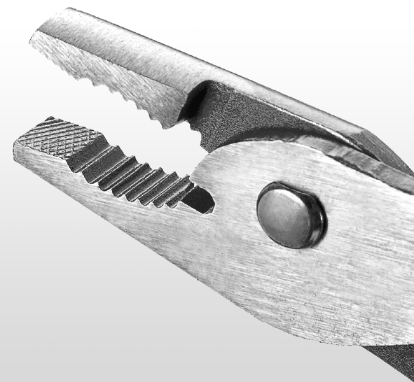 - Jaws are deeply serrated to get the best grip possible.