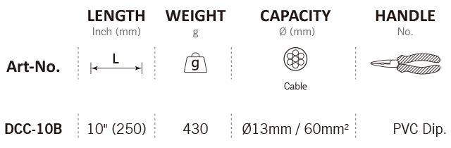 - Cutting capacity: vinyl coated copper/aluminum cables.