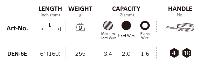 - Over 58 HRC cutters and high leverage ratio makes cutting through high tensile wire easy.